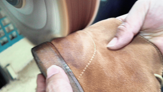 用高光鞋乳在磨砂皮上改变鞋头、鞋跟这些结构点的质感,既起到一定的加固、耐磨作用,又塑造出哑光绒面与亮面结构的层次对比,让一双原本平平无奇的磨砂皮靴,瞬间拥有了复古美感和故事感。