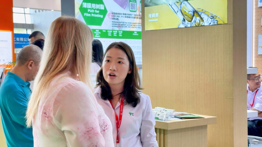 展會期間,科控展台(2號館T123)人氣爆棚,吸引了許多專業觀眾駐足參觀和交流。來自亞洲各地的油墨製造商、印刷包裝企業、品牌方代表紛紛蒞臨科控展位,深入探討水性聚氨酯技術在紙張和薄膜領域的創新應用。