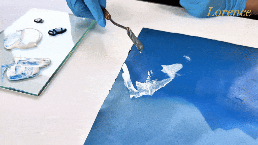 將藍色與白色 TP 顏料膏調和均勻,作為基底色調;